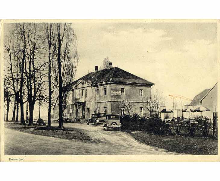 Hohe Rodung will der Name besagen und ist zunaechst nur ein Flurname gewesen. Ebenso alt dürfte die Hohe Straße sein, die daran vorbeiführt. Sie verband die beiden reussischen Herrscherhäuser Gera und Schleiz miteinander. Wenig verwunderlich also, dass ein Herr von Seckendorf im Jahre 1826 dieses Stück Land von den Kleinbockaer Bauern erwarb, um bereits 1827 ein Wirtshaus darauf zu errichten. Wohlweislich hielt er diese Pläne vor den Bauern geheim, hatte er doch schon längst bei der Landesregierung in Weimar die Gunst zum Bauen erwirkt. So wurde dieses Wirtshaus zum einen von den Fuhrleuten als Ausspanne genutzt, etablierte sich andererseits zum beliebten Ausflugsziel der Umgebung. Auch die Ablösung der Pferdefuhrwerke durch das Automobil tat den Geschäften keinen Abbruch. Lediglich in den Wirren der Kriege blieb das Gasthaus geschlossen.